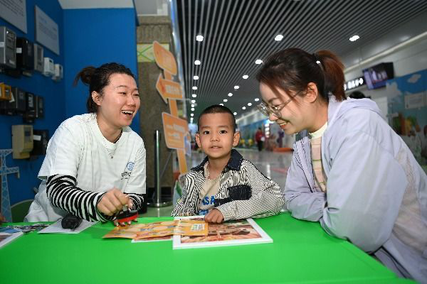 市民帶著孩子前來參加有獎問答、刮刮樂等形式多樣的活動。