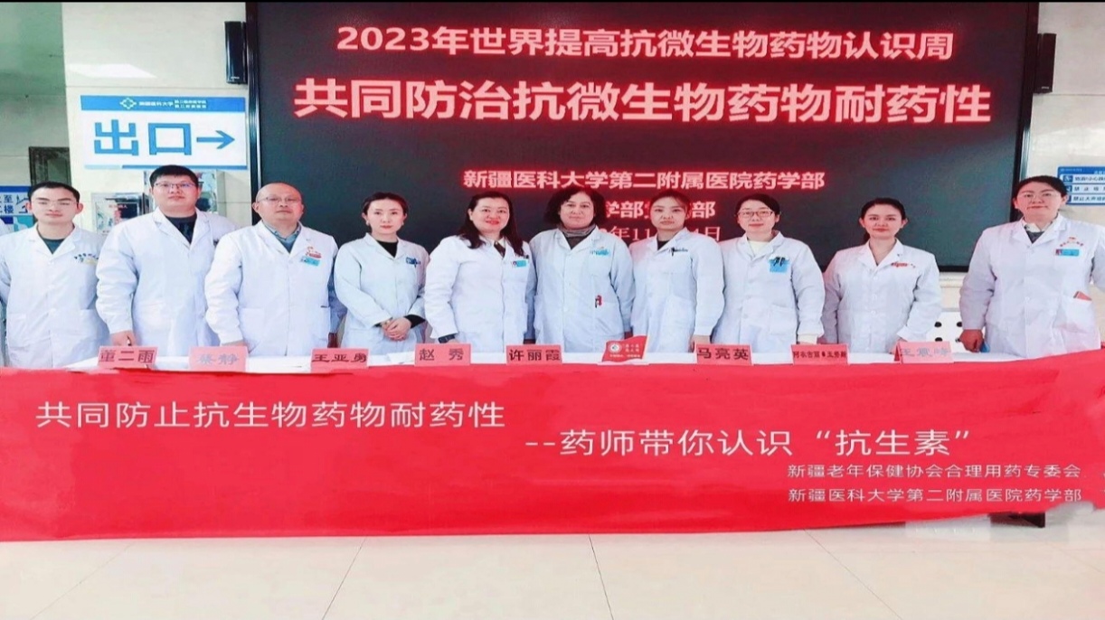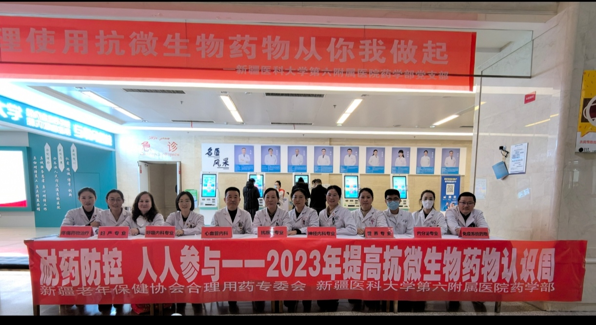 11 月 18 日至 24 日為世界提高抗微生物藥物認識周,今年的主題是“齊心協力,預防抗微生物藥物耐藥性”,新疆老年保健協會合理用藥專委會抗感染組各成員單位及相關醫院在積極響應號召,在全疆各地圍繞主題,以發放宣傳資料、現場義診、宣傳展板、知識培訓、走進臨床及開展義診等一系列活動廣泛宣傳抗微生物藥物合理使用知識,幫助社會公眾和醫務人員提高了對抗微生物藥物及耐藥危機的認識,為全社會參與抗微生物藥物合理使用營造了良好氛圍。