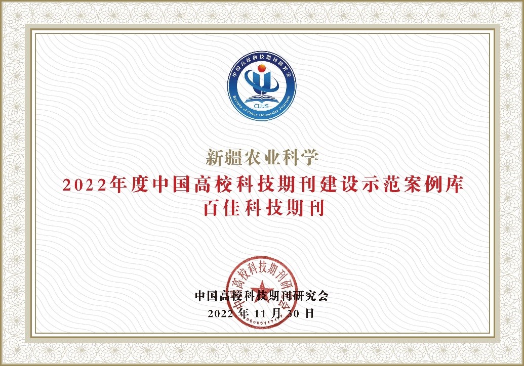 2022年11月30日,中國高??萍计诳芯繒ㄟ^對國內(nèi)外相關(guān)數(shù)據(jù)庫、評價機構(gòu)的評價、計量結(jié)果等第三方客觀數(shù)據(jù)進行加權(quán)計算,經(jīng)同行專家反復(fù)審核、確認《新疆農(nóng)業(yè)科學》入選中國高校百佳科技期刊,這也是新疆唯一入選中國高校百佳科技期刊。