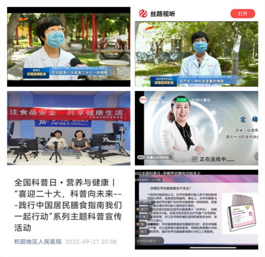 鼓勵基層營養科技工作者結合工作,拓展科普領域,突出線上科普宣傳優勢。新疆營養學會充分發揮新媒體優勢,大力推廣線上傳播,加大新聞和科普傳播力度,充分發揮文、圖、影的傳播效果,提高了“全國科普日”活動的滲透力。通過線上線下相結合的活動形式,配合媒體大力宣傳報道,給公眾全新的感受和體驗,形成專家引航、人人參與的全國科普日教育活動。