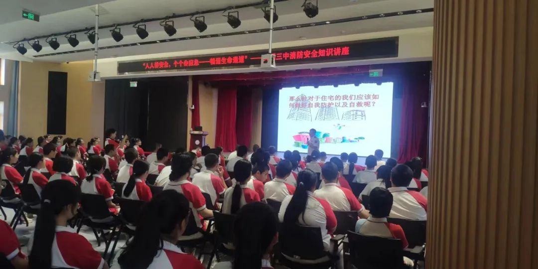 隨后,消防救援人員本著讓師生“懂基本消防安全常識、會火場逃生自救、認知理解消防”的宗旨,以現場問答的方式,調動師生們的學習熱情,為師生們普及校園消防安全、家庭消防安全、如何正確撥打火警電話119、如何撲滅初期火災等消防安全常識。