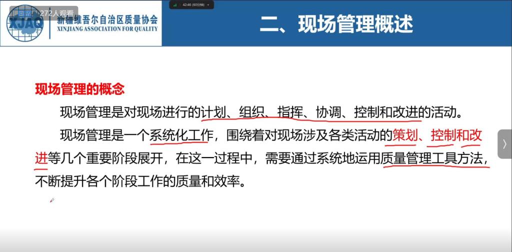 為引導(dǎo)和幫助各類組織不斷夯實現(xiàn)場管理基礎(chǔ),實現(xiàn)質(zhì)量提升、效率提高,持續(xù)提升核心競爭能力。11月3日,新疆質(zhì)量協(xié)會以線上形式組織開展了企業(yè)現(xiàn)場管理公益培訓(xùn)。