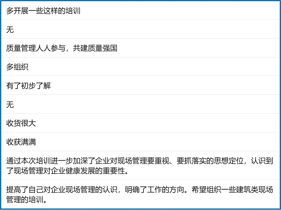 我區(qū)部分企業(yè)現(xiàn)場管理負責(zé)人、質(zhì)量管理人員代表共計250余人參加培訓(xùn)。為企業(yè)掌握現(xiàn)場管理方法、培養(yǎng)各類管理人才,提升企業(yè)創(chuàng)新、創(chuàng)造、改進能力奠定基礎(chǔ)。