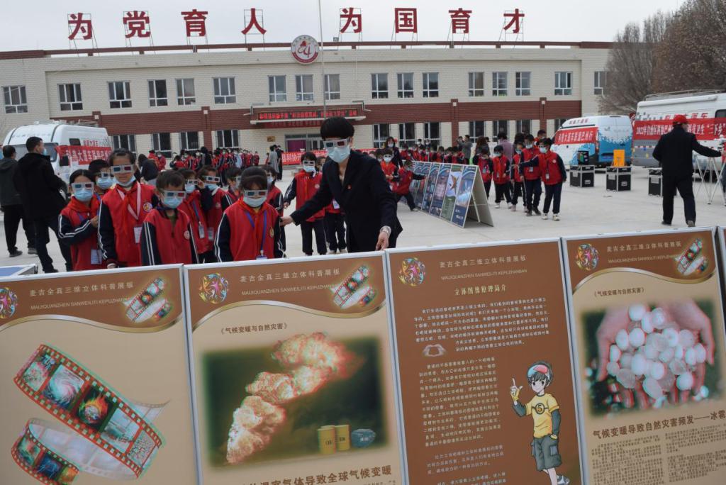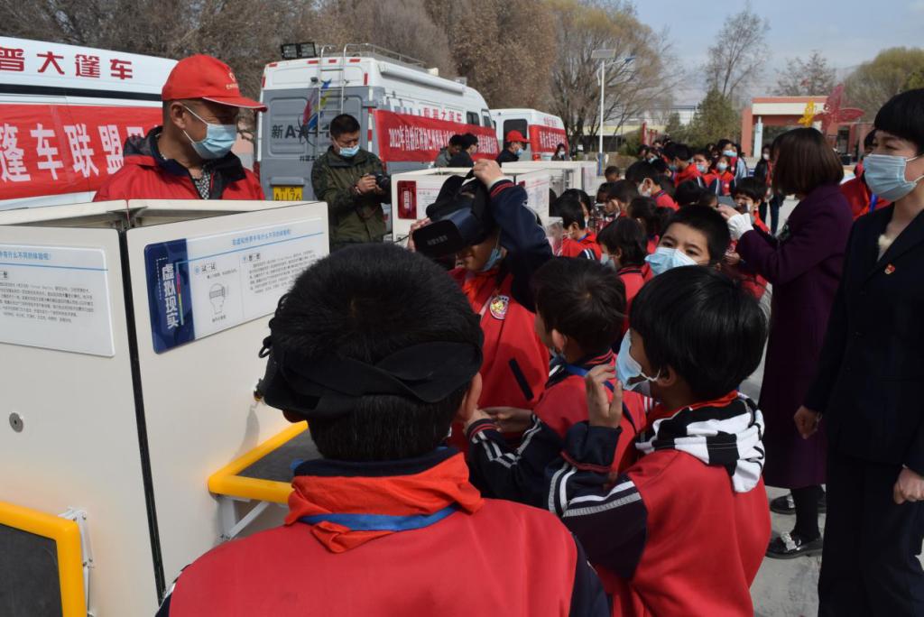 活動開始,6輛科普大篷車整齊停放在和碩縣第四小學操場上,各種不同類型的車載科普展教具、機器人、無人機、3D科普展板、VR眼鏡以及少兒科普讀物琳瑯滿目,孩子們整齊列隊來到操場上,在科普志愿者的引導下,各班老師和同學分班、分組、分區域有序參與到科普活動中來。