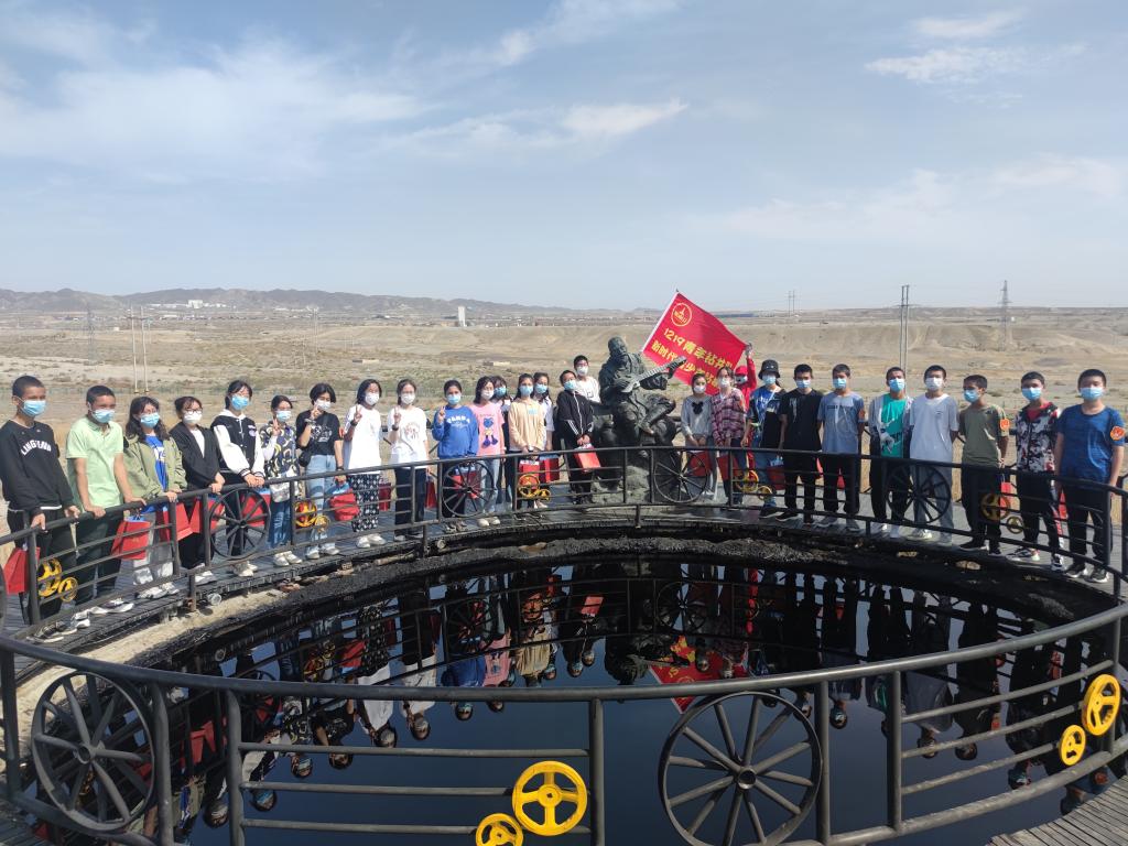 五月一日當天,同學們來到了科普研學第一站:克拉瑪依市科普教育基地——黑油山景區。在黑油山科普教育基地,講解員老師給同學們授予了“1219青年鉆井隊新時代青少年鉆探隊”的隊旗,通過自我推薦及選舉方式推選出大隊長及相關鉆探隊管理人員,并為每一位同學佩戴了隊章并進行了宣誓。同學們循著“1219青年鉆井隊”的足跡,參觀了油井,制作了“油葫蘆”,進行了可樂噴發小實驗,感受了“跳跳泉”,了解了“蒸氣吞吐法”“注水法”“火燒油層法”三種采油方式,同學們探索了石油的奧秘,深刻領悟到老一輩石油人開拓進取,愛國奉獻的精神。下午,同學們來到全國科普教育基地、自治區青少年科技教育基地——克拉瑪依科技館,科技館為同學們精心安排了“探索絲綢之路的秘密”“樂享影視”“科學起跑線—人工智能體驗課程”等四個研學課程,通過場景式、體驗式、互動式、探究式的教學,同學們感受到了科技的神奇魅力,激發了同學們“愛科學、學科學、用科學”的熱情。