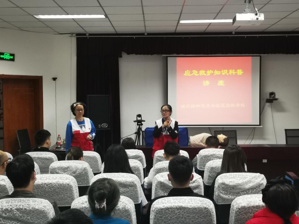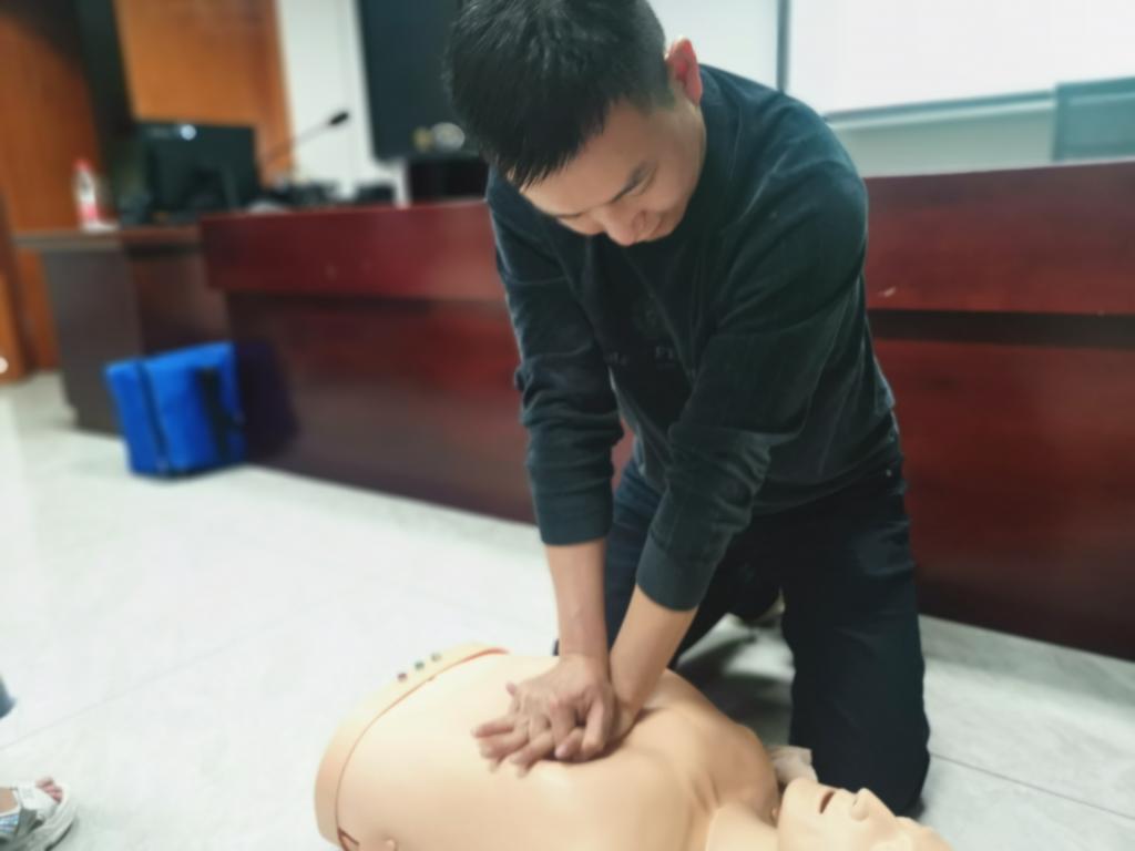培訓(xùn)中,科普志愿者、應(yīng)急救護(hù)師資肖紅老師從理論知識講解開始,普及《中華人民共和國紅十字會法》,深入淺出地講解了心肺復(fù)蘇、AED使用、人工呼吸、外傷止血和包扎等急救知識,宣傳普及了紅十字運(yùn)動(dòng)基本知識;從實(shí)際操作入手組織員工們分組進(jìn)行心肺復(fù)蘇技能實(shí)操演練,耐心解答學(xué)員的問題,糾正不規(guī)范操作。重點(diǎn)詳細(xì)的講解了“黃金四分鐘”的概念、止血包扎等創(chuàng)傷救護(hù)基本技能、常見急癥現(xiàn)場處理、突發(fā)事件和意外傷害現(xiàn)場應(yīng)對、心肺復(fù)蘇等應(yīng)急救護(hù)知識和技能,并指導(dǎo)學(xué)員利用模擬人、繃帶等教具進(jìn)行實(shí)操演練。居民們認(rèn)真聽講并積極踴躍參與實(shí)操演練,現(xiàn)場氣氛十分熱烈。