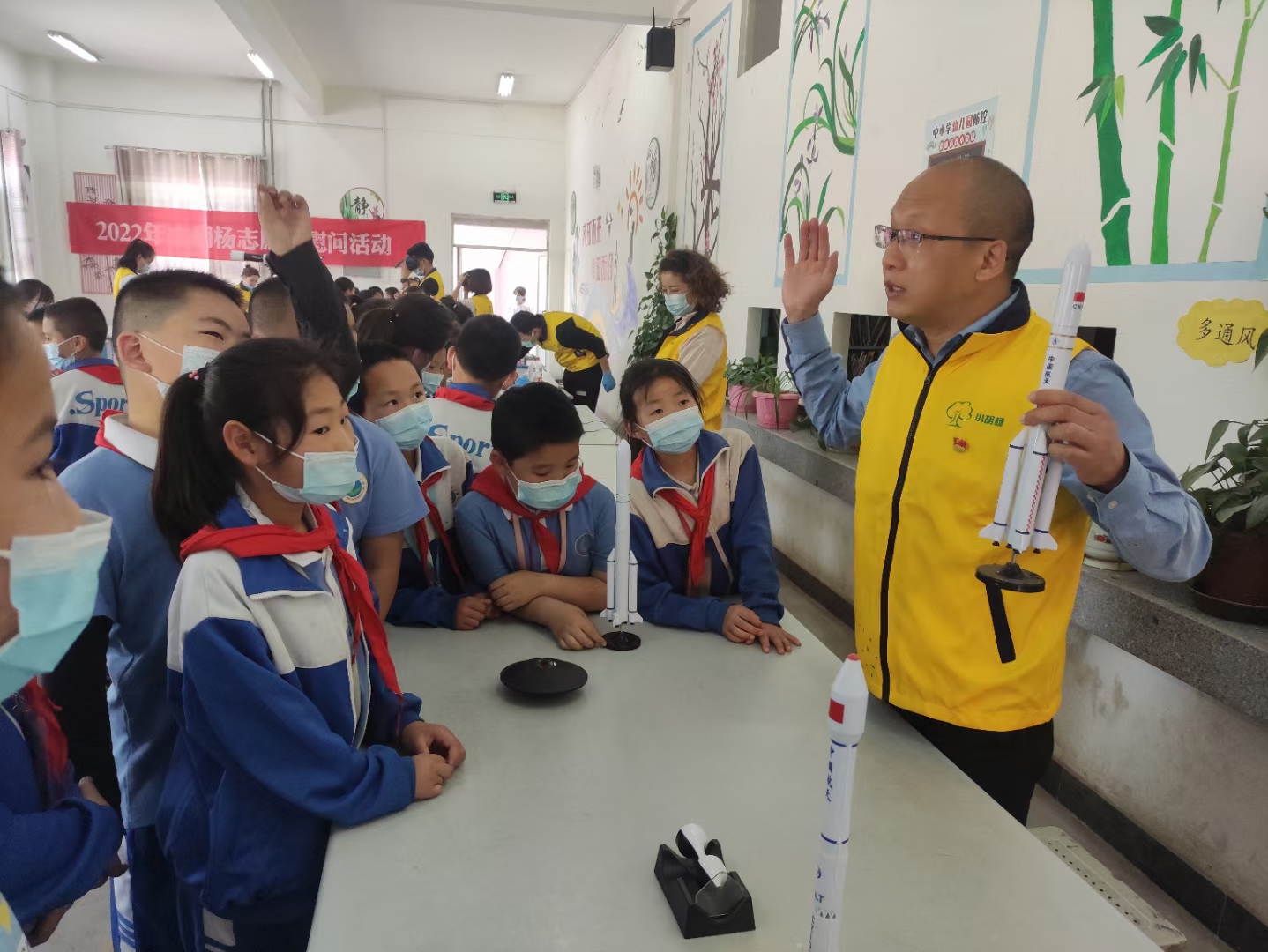 2022年4月16日,神舟十三號(hào)載人飛船返回艙在東風(fēng)著陸場(chǎng)成功著陸,3位宇航員成了學(xué)生們心目中的最敬佩的英雄,眼下對(duì)宇宙奧秘探索話題成立同學(xué)之間最熱門的話題。巴楚縣科協(xié)充分利用科普教育基地科普資源,發(fā)揮自身優(yōu)勢(shì),組織科普志愿者深入校園開展科普活動(dòng),助推“雙減”工作。