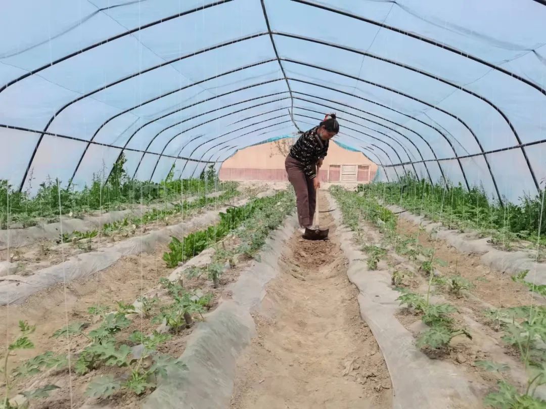 走進阿拉庫姆力克(17)村2組村民帕太木·圖拉麥提家的拱棚,一片翠綠映入眼簾,拱棚內的西瓜苗正煥發著勃勃生機,帕太木·圖拉麥提正在拱棚里忙著給西瓜苗培土。