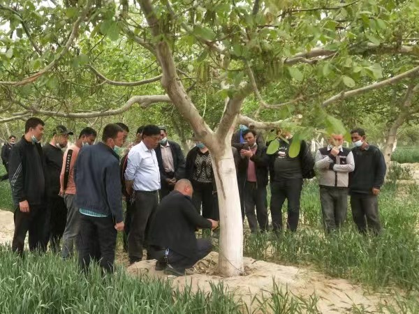 村民買買提·吐爾遜對現場培訓很感興趣,他說:“我對核桃管理的知識掌握得不多,參加培訓能學到很多技能?!比ツ辏I買提·吐爾遜家20畝核桃每畝增產30公斤,增收近1萬元,今年他準備好好管理果園,爭取更高收入。