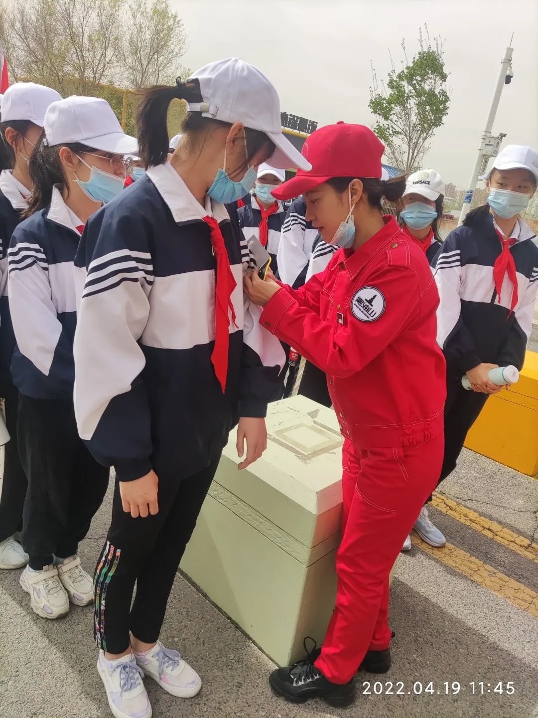 活動(dòng)一開始,講解員給同學(xué)們授予了“1219青年鉆井隊(duì)、新時(shí)代青少年鉆探隊(duì)”的隊(duì)旗,并為同學(xué)們佩戴了隊(duì)章。同學(xué)們循著“1219青年鉆井隊(duì)”的足跡,踏上了研學(xué)之旅。