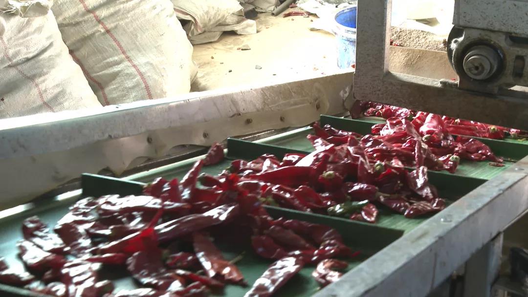 車間內,工人們正把經過機器分揀的剪把辣椒進行二次分揀,確保初加工的產品質量。而合作社的發展也為當地提供了不少就業崗位。