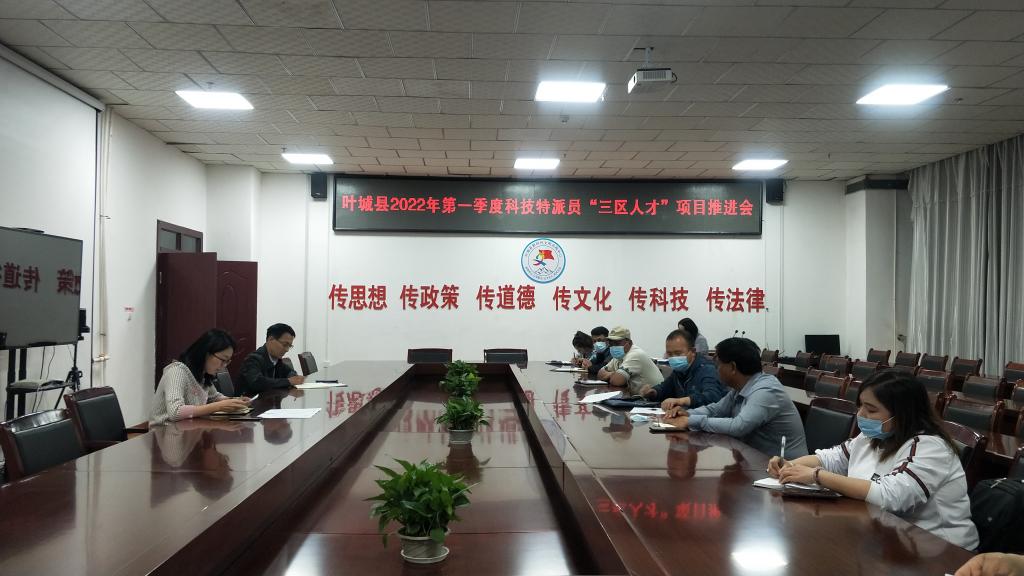 為加強科技項目管理,進一步發揮葉城縣科技特派員中“三區人才”的作用,為全縣農業生產、鄉村振興提供良好的技術服務保障,葉城縣科協、科學技術局組織召開2022年第一季度科技特派員“三區人才”項目推進會,葉城縣科協、科技局主要領導和服務期內的8名科技人員參加,會議由葉城縣科學技術局黨組書記封利主持。