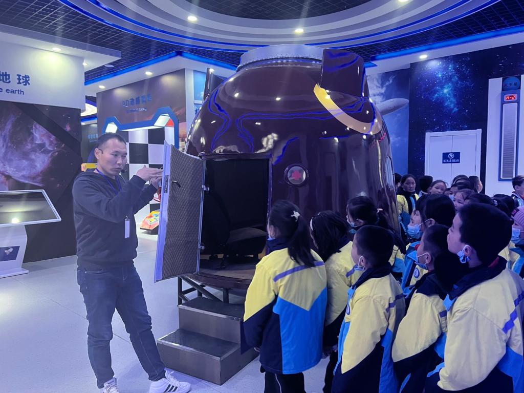 活動中,來自和布克賽爾縣第一小學(xué)學(xué)生代表宣讀“航天點亮夢想,做時代少年”倡議書,和布克賽爾縣第一小學(xué)科技教師為學(xué)生們講述中國航天事業(yè)發(fā)展史。學(xué)生們跟隨科技館講解員,了解體驗了太空環(huán)、模擬火箭發(fā)射、返回艙等展品模型,參觀科技館航天展廳展品,了解我國航天發(fā)展史,進一步促進青少年對中國航天事業(yè)的關(guān)注和了解。