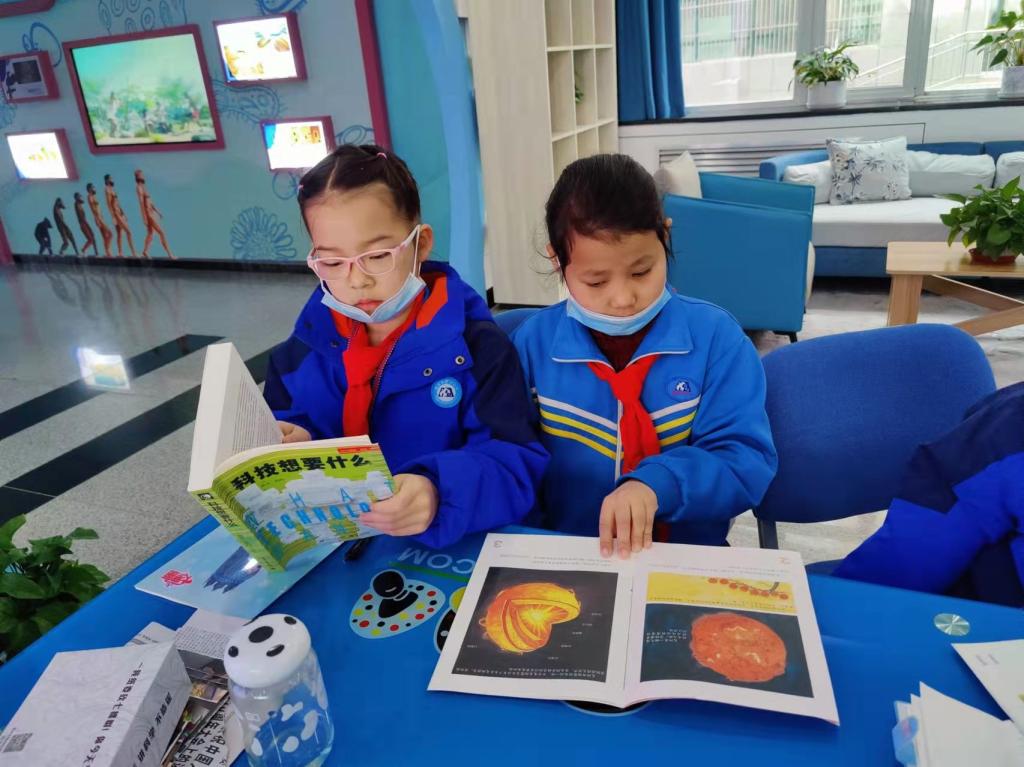 一走進科技館,同學們被一本本科技繪本雜志所吸引,如饑似渴地汲取著科技知識。