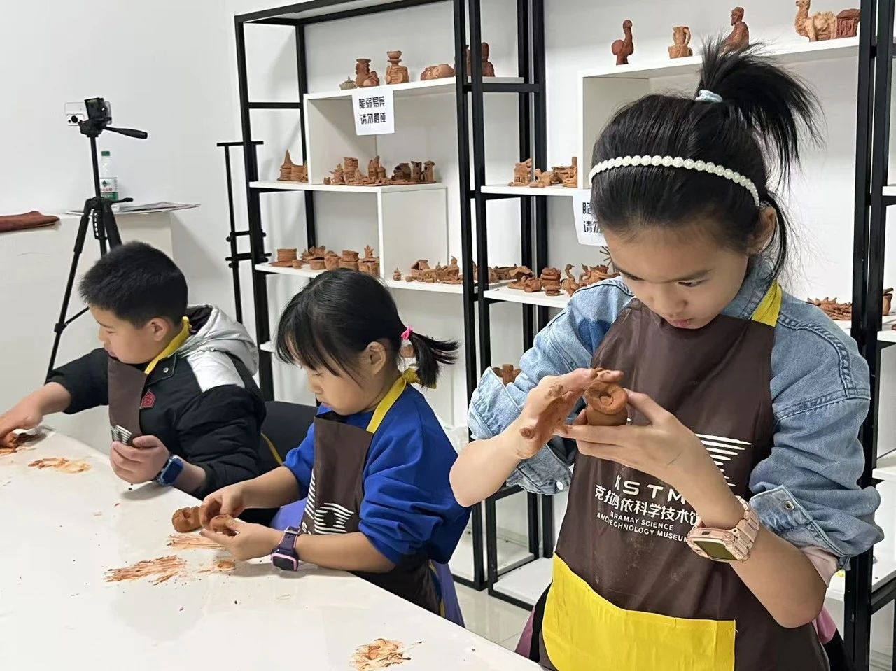 “小‘科’蚪尋科跡—科學(xué)少年?踏雪而行”冬令營的活動豐富多彩,活動首日以“小小傳承人”為主題,通過開營儀式和破冰游戲拉近孩子們的距離,隨后在非遺文化板塊,讓孩子們深入了解陶塑、泥塑藝術(shù),親手制作泥塑冰箱貼,并欣賞和創(chuàng)作了皮影戲,引導(dǎo)孩子們在傳統(tǒng)文化的海洋中感受中華文化的獨特魅力。第二天的“小小設(shè)計師”主題活動,則圍繞生態(tài)環(huán)境知識展開,從科學(xué)小實驗引入,通過觀看科普劇《東方魔稻》、參觀展廳以及手工創(chuàng)作等形式,增強他們的環(huán)保意識。第三天的“小小科學(xué)家”主題,帶領(lǐng)孩子們前往科技休閑健身俱樂部,體驗科技與運動的有機融合。下午分組進行化學(xué)、物理等多類型的科學(xué)實驗,拓展孩子們的創(chuàng)新思維。最后,孩子們在閉營儀式上展示了學(xué)習(xí)成果,分享了心得體會,紛紛表示在這個冬令營深受啟發(fā),收獲巨大。