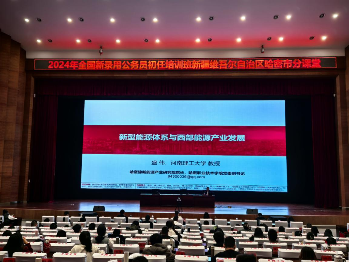11月14日,哈密市科協組織開展“科學家進黨校”活動,特邀哈密市豫哈研究院院長、哈密職業(yè)技術學院黨委副書記、副院長盛偉為市委黨校“2024年新錄用公務員初任培訓班”作《新型能源系統(tǒng)與我國西部能源產業(yè)發(fā)展》報告。