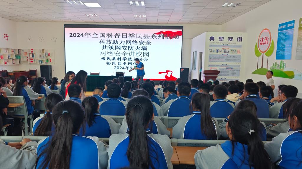 2024年9月9日至9月15日是國家網(wǎng)絡(luò)安全宣傳周。為科學(xué)普及網(wǎng)絡(luò)安全知識,增強(qiáng)青少年網(wǎng)絡(luò)安全意識,提升青少年科學(xué)素質(zhì),塔城地區(qū)裕民縣科協(xié)聯(lián)合裕民縣委網(wǎng)信辦,組織裕民縣第一中學(xué)高一年級組的160名學(xué)生開展“科技助力網(wǎng)絡(luò)安全,共筑校園網(wǎng)安‘防火墻’”2024年全國科普日裕民縣系列活動。