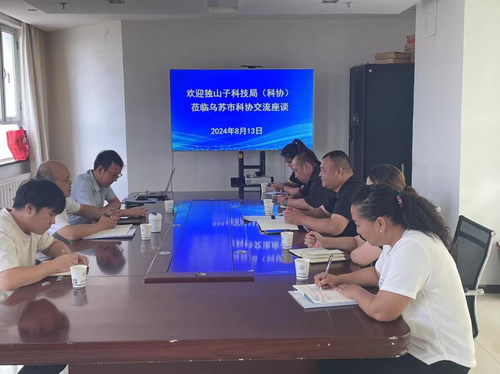 8月13日,獨(dú)山子區(qū)科技局(科協(xié))局長涂新一行3人赴烏蘇市科協(xié)開展科技館建設(shè)管理工作交流學(xué)習(xí)座談。烏蘇市科協(xié)黨組書記劉彥超、烏蘇市科協(xié)相關(guān)工作人員參加座談會。