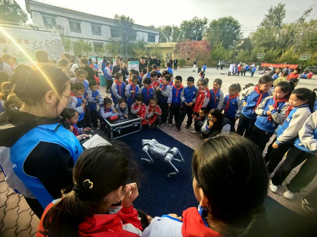 科普志愿者們精心布置各個科普展示區域,科普大篷車帶來的車載展品及VR眼鏡、機器狗、機器人表演、機械傳動、運動與力學等科普項目引發學生共鳴。其中,智能機器狗靈動地穿梭在展示區域,敏捷的動作和可愛的模樣瞬間成為了同學們眼中的焦點。機器人操作技能展示,仿佛在向同學們訴說著科技的無限魅力,酷炫的機甲、金屬質感的外殼在陽光下熠熠生輝,散發出一種強大的科技氣場,讓同學們對未來科技充滿了遐想。經典的馬德堡半球實驗展示區更是圍滿了躍躍欲試的學生;當看到兩個半球緊緊合在一起難以拉開時,同學們驚訝的表情中滿是對科學原理的求知欲。