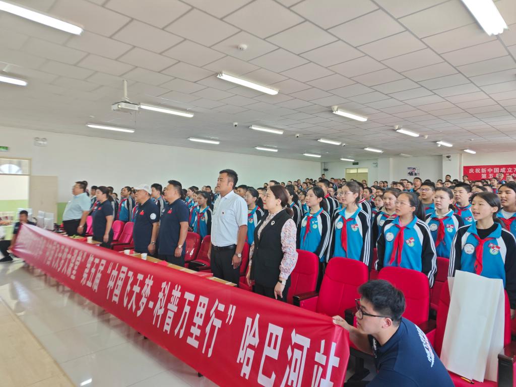 9月11日,中國飛天夢科技志愿團開展的“中國飛天夢大課堂”第五屆“中國飛天夢-科普萬里行”活動走進哈巴河縣初級中學。中國運載火箭技術研究院、長征系列運載火箭總體工藝師研究員、中國飛天夢科技志愿團專家志愿者王金山、中國飛天夢科技志愿團團長李俊天、中國飛天夢科技志愿團副團長張海,以及哈巴河縣科協工作人員、哈巴河縣初級中學師生等共300余人參加活動。