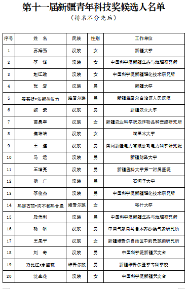關于第十一屆新疆青年科技獎評選結果的公示
