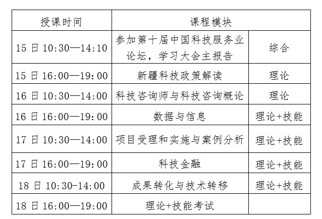 七、考試要求及方式:培訓期間學員必須完成科技咨詢師公共服務平臺每日打卡,方可進入考試模式;采用線上系統(tǒng)考試,學員請務必攜帶筆記本電腦。