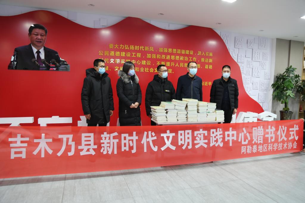 贈書儀式上,阿勒泰地區科協為吉木乃縣新時代文明實踐中心贈送《平易近人 習近平的語言力量》《食療養生》《圖觀茶天下 茶話》等生活保健、思想政治、生活娛樂類圖書10多類200多冊,豐富了新時代文明實踐中心的圖書資源,進一步增強了新時代文明實踐中心圖書室對公眾的吸引力。贈書儀式結束后,相關領導和工作人員還一同參觀了實踐中心的展廳。