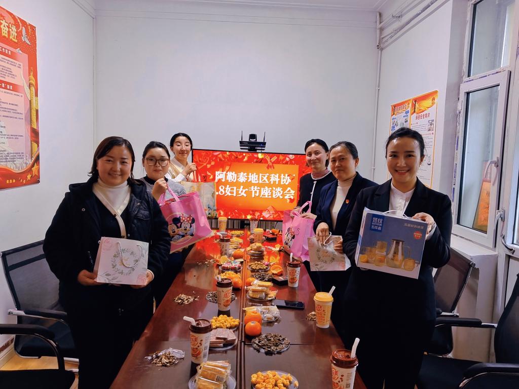 阿勒泰地區(qū)科協(xié)全體男同事精心為女同事準(zhǔn)備禮物,活動(dòng)中女同事抽簽拆禮物,座談交流,加深同事情誼,共話發(fā)展極大地增強(qiáng)了科協(xié)凝聚力。活動(dòng)彌漫著快樂和幸福的滋味,彰顯了科協(xié)的人文關(guān)懷,舒心暖心,也讓大家在活動(dòng)中,增進(jìn)了溝通和了解。大家紛紛表示,以更加飽滿的熱情投入到工作中,踔厲奮發(fā),篤行不怠,為科協(xié)工作貢獻(xiàn)力量。