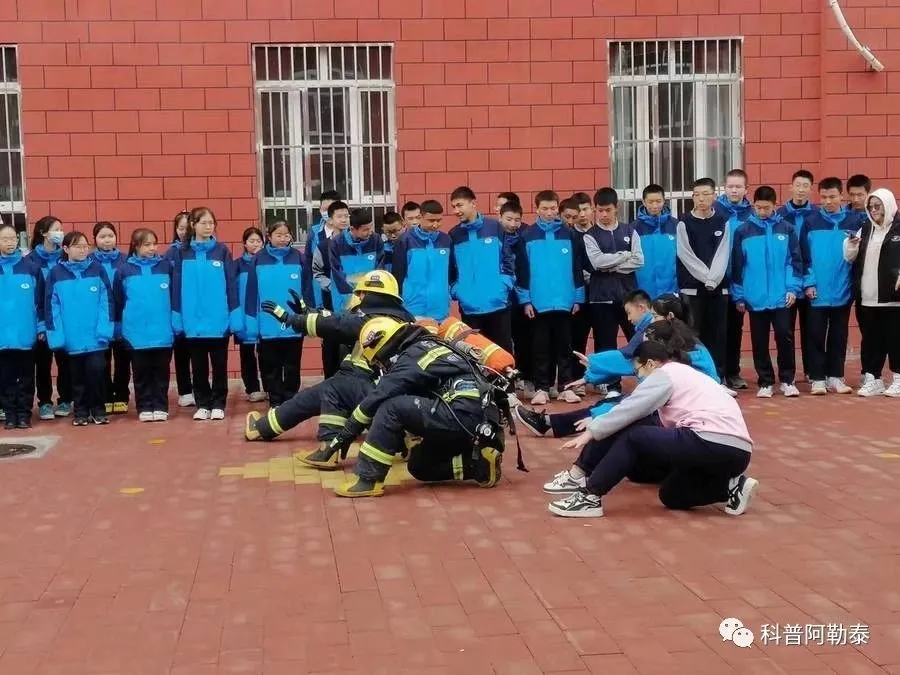 在消防安全現(xiàn)場演練環(huán)節(jié),阿勒泰市消防救援大隊的消防隊員們現(xiàn)場模擬了營救火場被困人員,并帶領學生們進行現(xiàn)場消防安全教學,強化師生的消防安全意識,普及安全知識,提高學生們的自我保護能力。