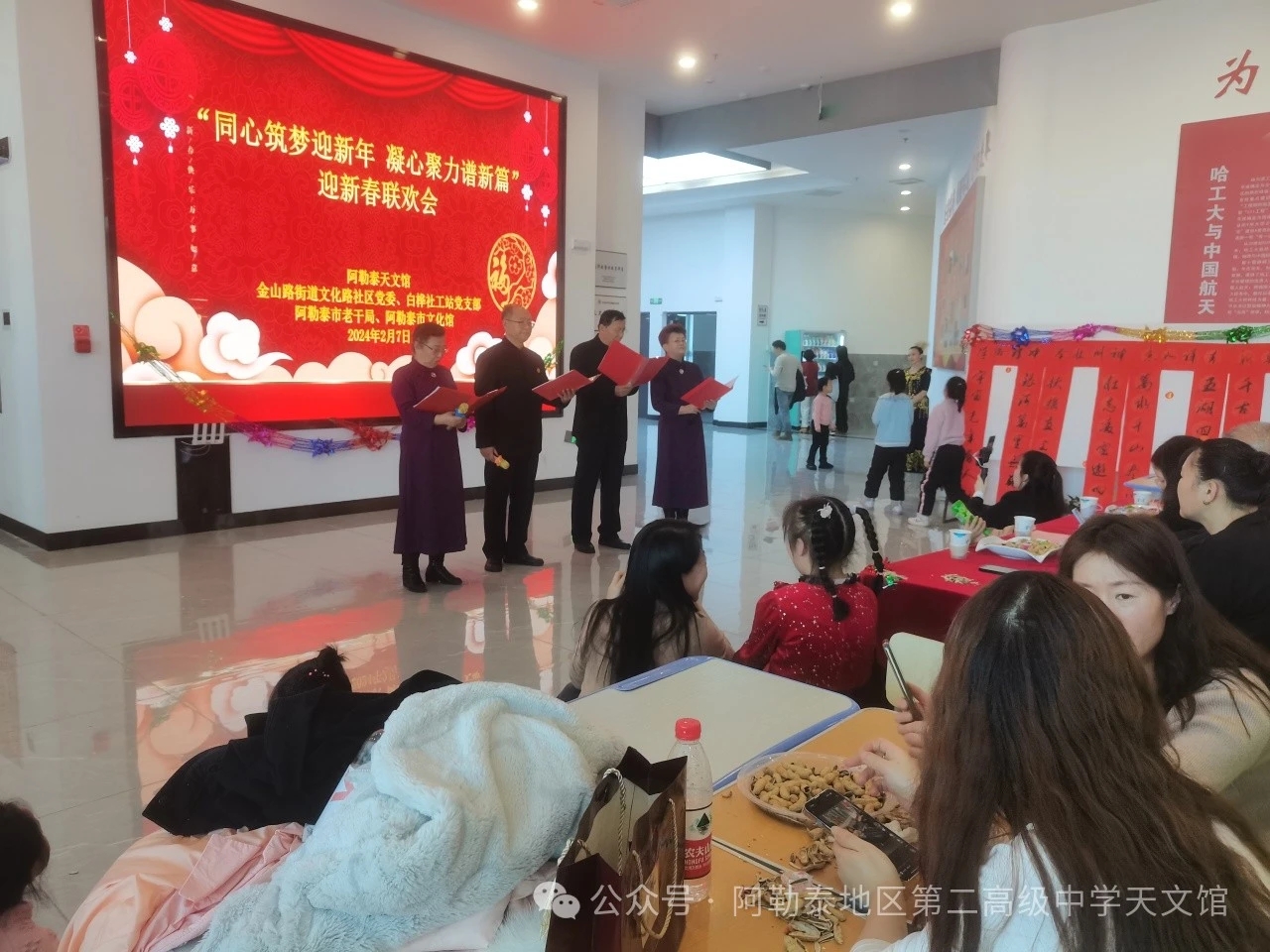 新春將至,為弘揚中華民族傳統(tǒng)文化,增進各民族之間的團結與友誼,2月7日下午,阿勒泰地區(qū)科協(xié)、阿勒泰天文館(科技館)聯(lián)合金山路街道文化路社區(qū)黨委、阿勒泰文化路社區(qū)黨委、阿勒泰市老干部局、阿勒泰文化館、白樺社工站黨支部,在阿勒泰天文館二樓大廳開展阿勒泰地區(qū)“科技之冬”系列活動——“歡迎新春,共游天文”活動。