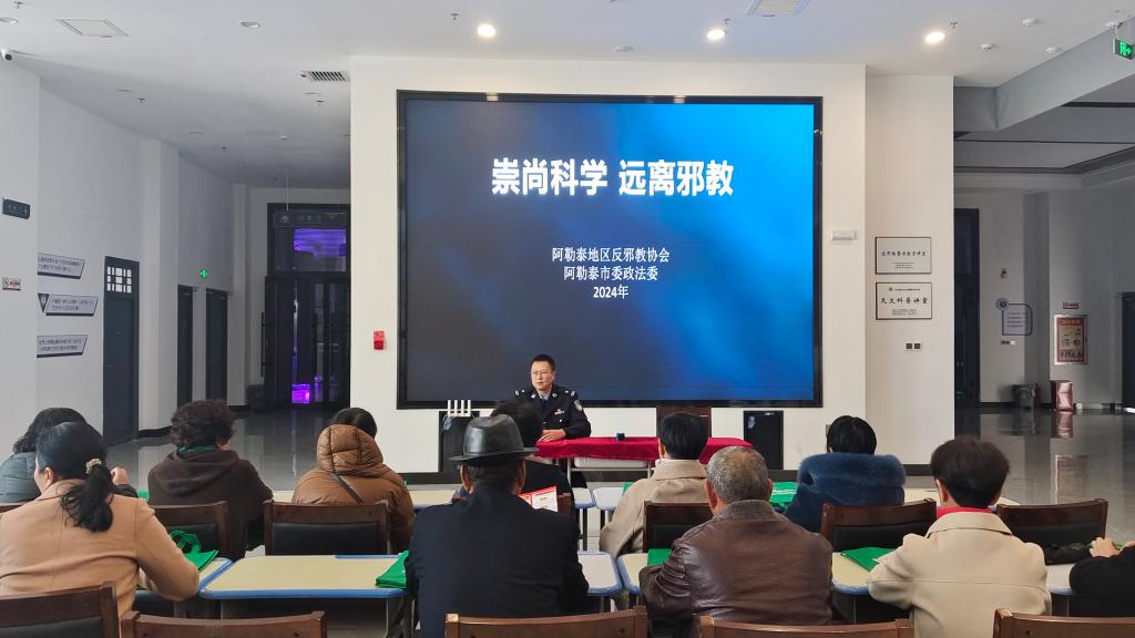 2024年10月24日,阿勒泰地區反邪教協會、阿勒泰地區科協與阿勒泰市委政法委積極行動,組織解放北路社區30余名居民在阿勒泰天文館開展了一場以“邪教危害你我他 反邪防邪靠大家”為主題的活動。