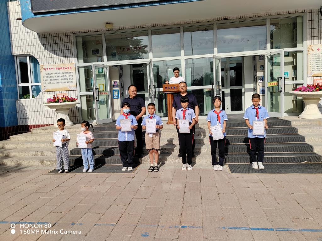 6月12日上午,烏蘇市科協(xié)聯(lián)合市第四小學(xué),組織全體師生在國(guó)旗下,為2022年青少年科幻畫比賽中獲得榮譽(yù)的同學(xué)及輔導(dǎo)員頒發(fā)榮譽(yù)證書。