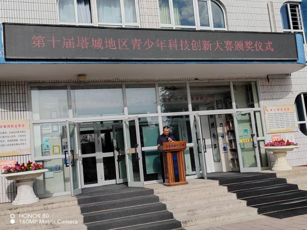 升旗儀式結(jié)束后,烏蘇市科協(xié)黨組書記、副主席劉彥超,烏蘇市第四小學(xué)書記一同在國(guó)旗下為獲獎(jiǎng)同學(xué)頒發(fā)獎(jiǎng)狀,此次活動(dòng)不僅是對(duì)獲獎(jiǎng)學(xué)生的一種肯定,更是對(duì)全校學(xué)生的一種激勵(lì)。