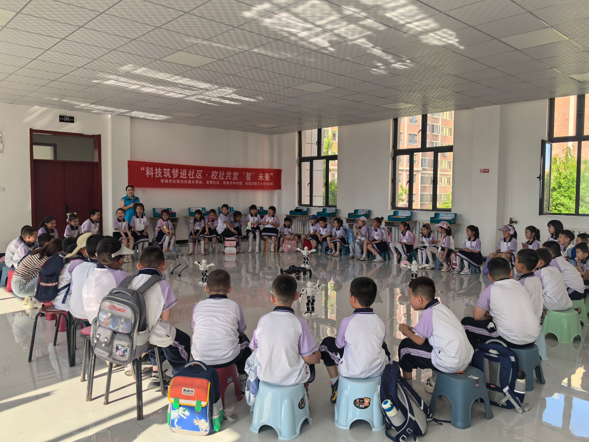 塔城市第三小學103班的同學們在老師帶領下有序參與活動。現場不時傳來驚喜的歡呼聲,社區居民也積極參與其中,與孩子們共同體驗科技的樂趣?;顒舆^程中,工作人員還向居民和學生發放科普手冊與科技文創禮品,進一步傳播科學知識。