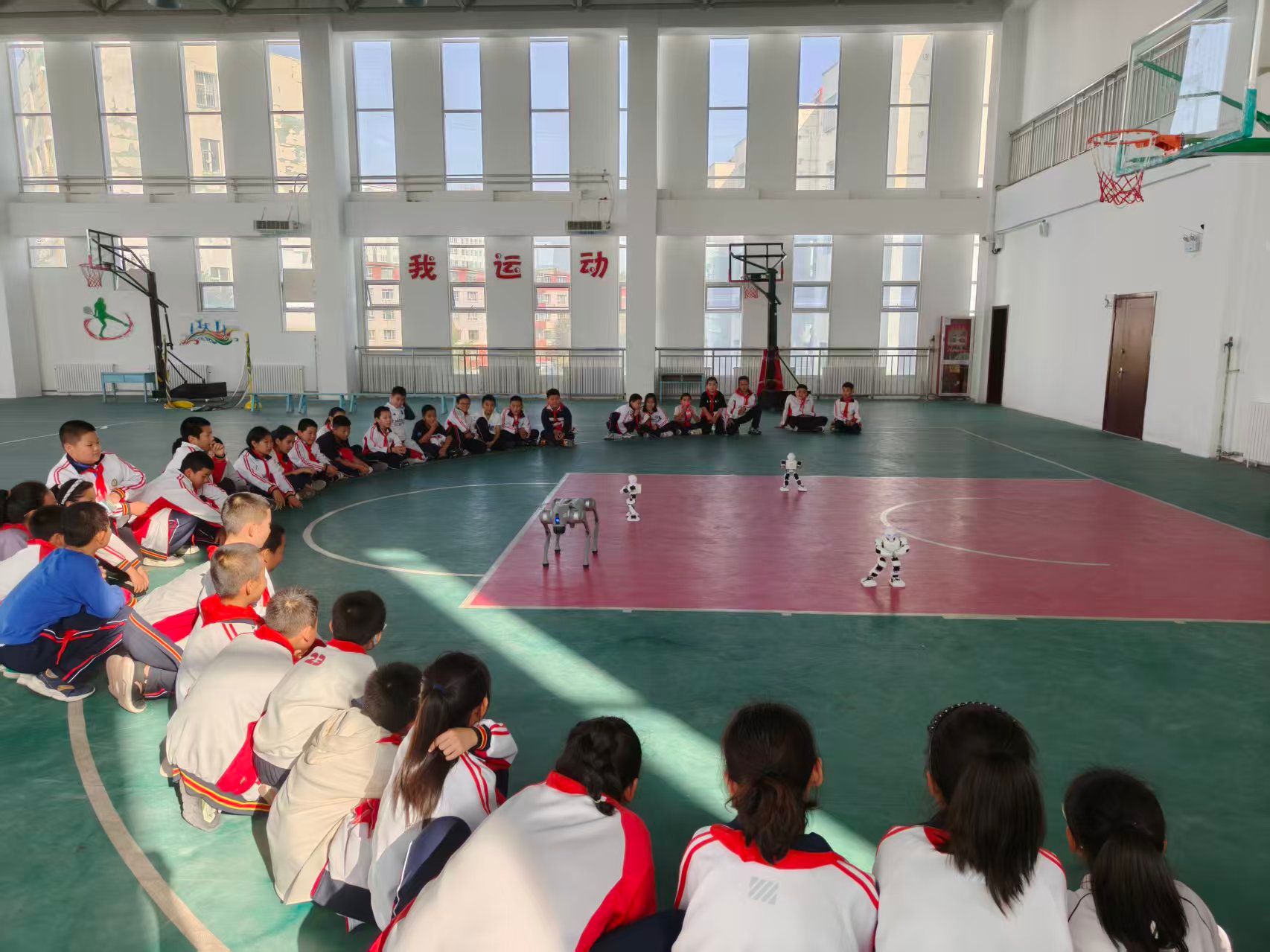 活動現場,同學們興致勃勃地參觀了各個科普展廳。在“五人飛碟”和“太空返回艙”展區,大家通過沉浸式體驗,近距離感受了航天科技的震撼與神秘,對我國航天事業取得的輝煌成就倍感自豪。機器人、機器狗的精彩表演,則引發了陣陣歡呼,靈活的動作和智能的互動,充分展現了人工智能技術的飛速發展與無限可能。在消防科普展廳,講解員通過實物展示與生動講解,向同學們普及了消防安全知識,提升了大家的自我保護意識。