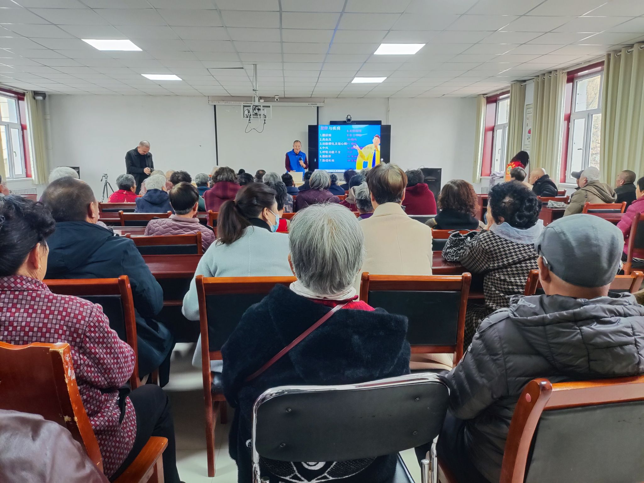 活動先后深入額敏鎮迎賓路社區與郊區鄉北郊村,面向當地100余名老年人,開展了內容豐富、形式多樣的健康科普宣傳。活動現場,特邀地區疾控中心資深老科技工作者孟保林,為老年朋友們帶來了一場生動實用的健康管理科普講座。孟保林結合老年人身體特點,深入淺出地講解了體重管理對預防慢性病、提升晚年生活質量的重要性,并就如何科學飲食、合理運動、保持健康體重等提供了專業指導,語言通俗易懂,案例貼近生活,引起了在場老人的強烈共鳴。
