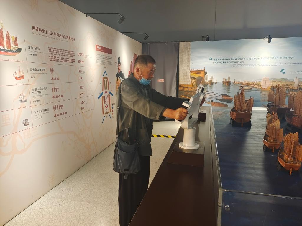 在走到鄭和下西洋的版面時,轄區老黨員徐慶玉叔叔還體驗了一把駕船航行的快樂。他說:這次的參觀活動很有意義。不僅學到了許多知識,還能夠邊體檢邊感受當時的發展情景,很不錯。