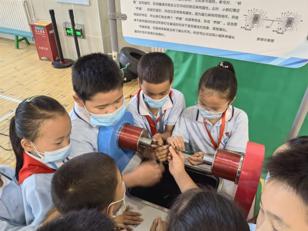 “老師,你看我一按動(dòng)這個(gè)按鈕,這個(gè)圓形就飛速轉(zhuǎn)起來了,好神奇啊!”“老師,這個(gè)怎么操作啊……”學(xué)生們樂在其中,認(rèn)真聆聽科技輔導(dǎo)員程勝華老師的講解,在享受現(xiàn)代先進(jìn)科技的同時(shí),拓展了科學(xué)知識(shí)。學(xué)生們時(shí)而蹲下瀏覽展品的介紹,時(shí)而向老師請(qǐng)教問題,探索科技的神奇。二年級(jí)一班程子軒同學(xué)正認(rèn)真地研究著“雅各布天梯”,他對(duì)電弧極其感興趣,堪稱“科學(xué)小專家”。他說:“這次科技展覽,我覺得非常有趣,以后我要做一位科學(xué)博士,研究更多的科學(xué)實(shí)驗(yàn)。”科學(xué)老師羅志宏說:“本次區(qū)科協(xié)舉辦的‘流動(dòng)科技館進(jìn)校園’活動(dòng)非常好,讓同學(xué)們零距離接受高科技知識(shí)、感受科學(xué)魅力。”