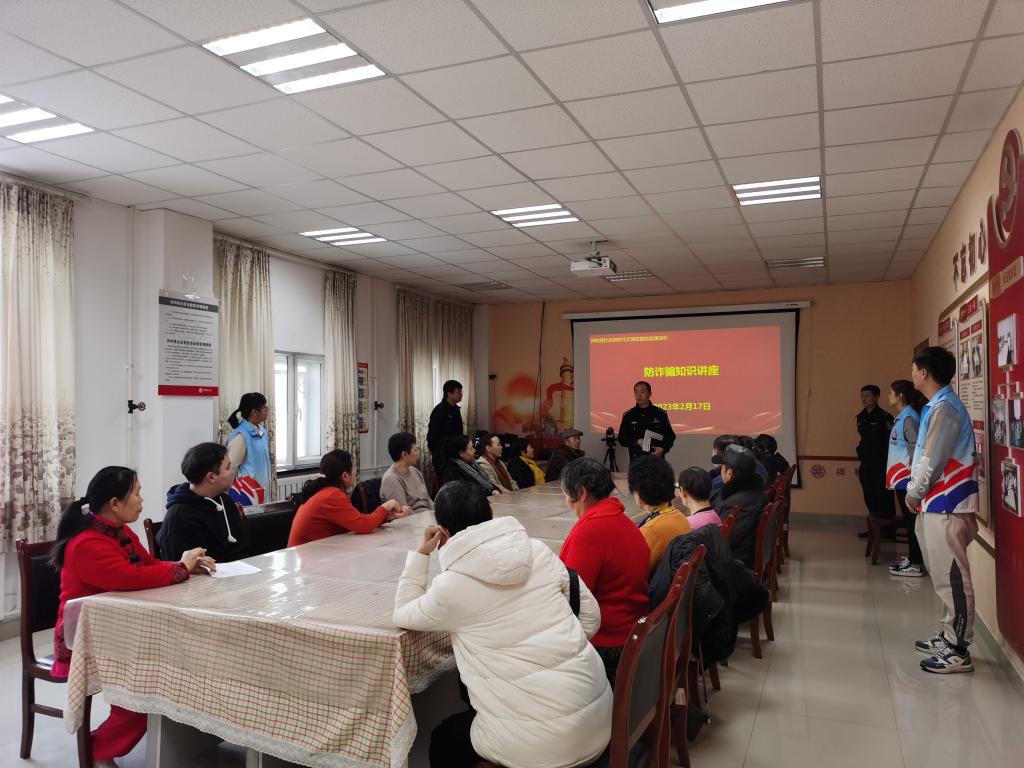 講座現場,祥和苑社區民警針對老年人心理防范意識不強、辨別能力弱等特點,把經常出現的一些新型詐騙手段、類型等情況,用通俗易懂的語言為大家講解如何分辨、預防電信詐騙,通過身邊的真實案例提醒居民要提高安全防范意識,樹立正確的理財觀念。平時科普志愿服務隊通過微信群、社區電子大屏、入戶發放反詐宣傳手冊等多種渠道向大家宣傳反詐知識,呼吁大家在提高自身反詐意識的同時將反詐知識分享給身邊的人,增強防騙意識。