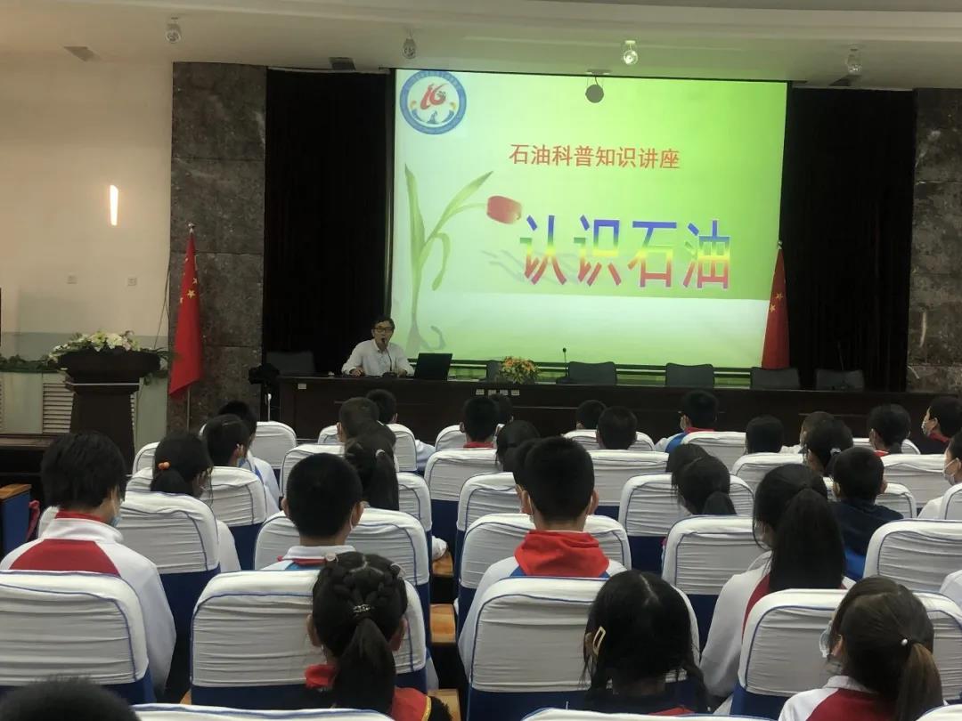 本次活動邀請了石油勘探開發方面的專家單守會為全體師生進行講座,單守會專家采用淺顯易懂的語言給學生們講解了石油的形成過程,石油的開采、冶煉過程,并讓孩子們列舉生活中的哪些日用品是由石油制造而來的。通過本次活動一系列的互動和講解,使五年級的學生基本了解了石油的相關知識,體會到了石油生產過程中需要面對的艱辛和困難,更加深了油城孩子們對石油的認識以及對石油精神的感悟。
