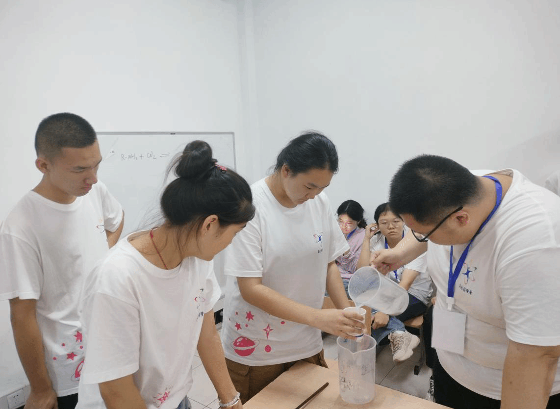 實驗探索環(huán)節(jié),同學們走進實驗室,親身體驗先進科研設備和實驗環(huán)境,在專業(yè)老師的指導下,開展有趣味性和挑戰(zhàn)性的化學實驗,感受科學研究的魅力,從色彩斑斕的化學反應到奇妙的物質(zhì)變化,每一次成功的實驗都伴隨著陣陣驚喜的歡呼。