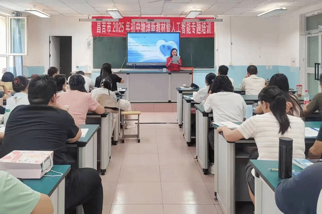 本次活動由昌吉市教育工作服務(wù)中心、昌吉市科協(xié)主辦,昌吉州陳泓妤庭州名師工作室、昌吉市第四中學協(xié)辦,面向全市50余名初中物理骨干教師,開展了一場聚焦新教材解讀與AI技術(shù)應(yīng)用的專題研修,為推動構(gòu)建智慧課堂、提升教師科技素養(yǎng)注入新動力。