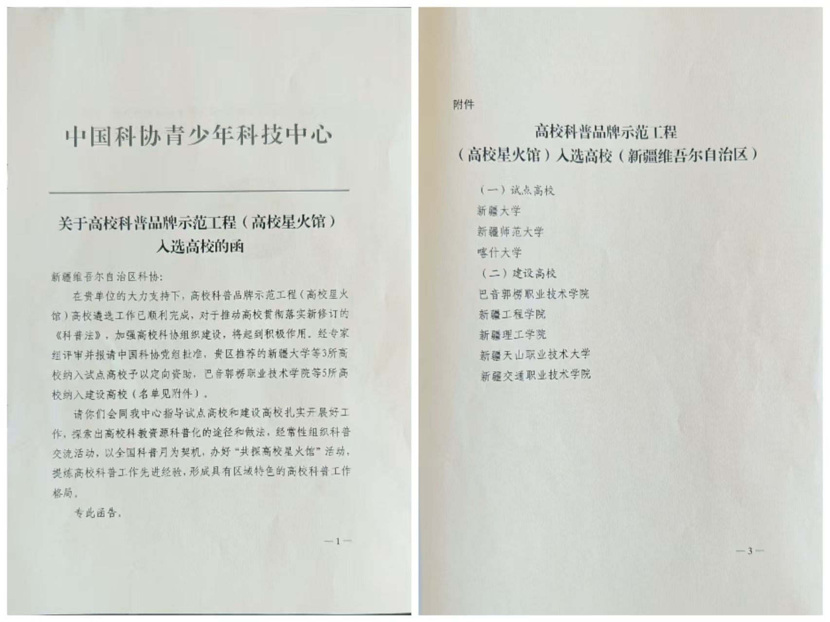 日前,全國高校科普品牌示范工程(高校星火館)遴選結(jié)果正式公布,巴州巴音郭楞職業(yè)技術(shù)學(xué)院成功入選B類建設(shè)高校。