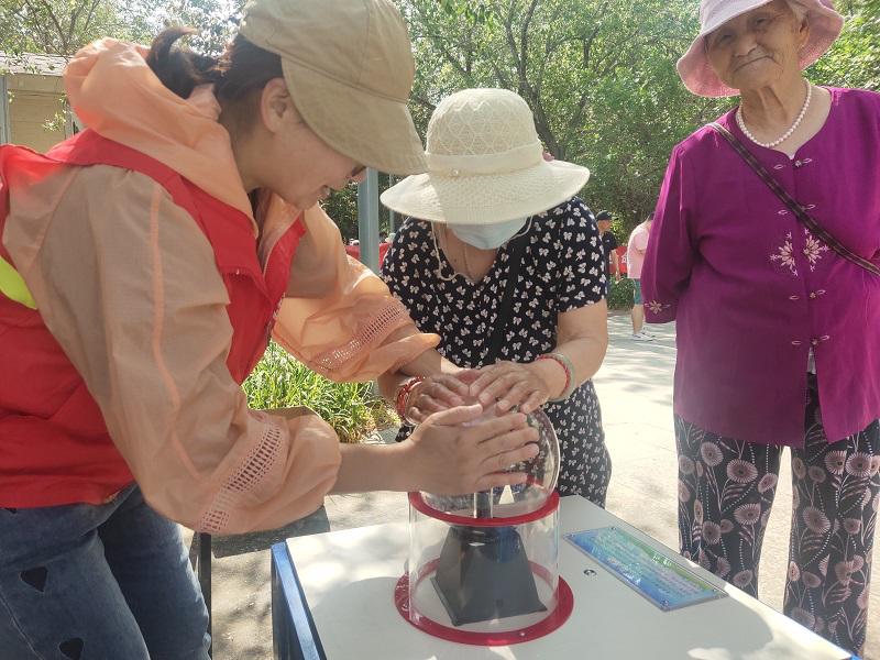 “這些設備是干什么用的呀?”一位晨練的老大爺饒有興趣的盯著科普大篷車前的科學儀器詢問科普志愿者。伴隨著居民群眾的疑問,今天的反邪教警示教育科普宣傳活動正式拉開了帷幕。“大爺,這些都是科學儀器,來,您用雙手感受一下。”科普志愿者帶領現場群眾深入體驗科學帶來的神奇魅力。