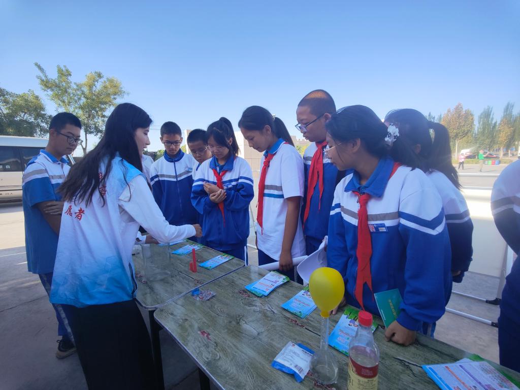 活動中,工作人員還向參觀人員展示了本單位特色“一月一主題科普”科學小實驗,結合工作人員展示、同學們自行操作再糾正并講解原理的方式,增加了趣味性。通過擺放三維立體展板、懸掛標語橫幅、發放宣傳資料等豐富多彩的方式,受到了熱烈歡迎。