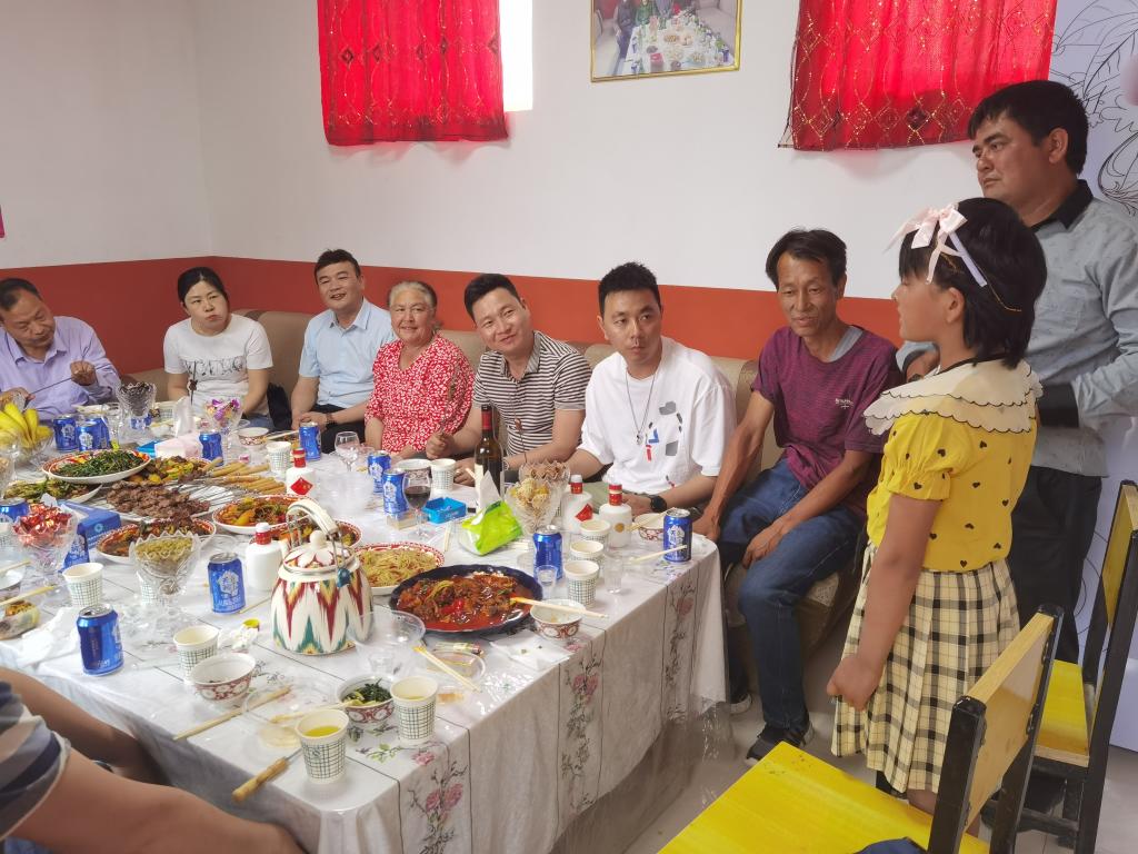 5月3日下午,恰逢肉孜節,王天雨一行再次驅車來到疏勒縣英阿瓦提鄉、阿拉力鄉,走訪慰問自治區社科聯駐滾獨魯庫木(3)村、托普恰克艾日克(9)村“訪惠聚”工作隊,并來到民族團結先進個人排則古麗·麥麥提家中聊家常、問冷暖,向他們送上節日祝福,親切詢問近況。