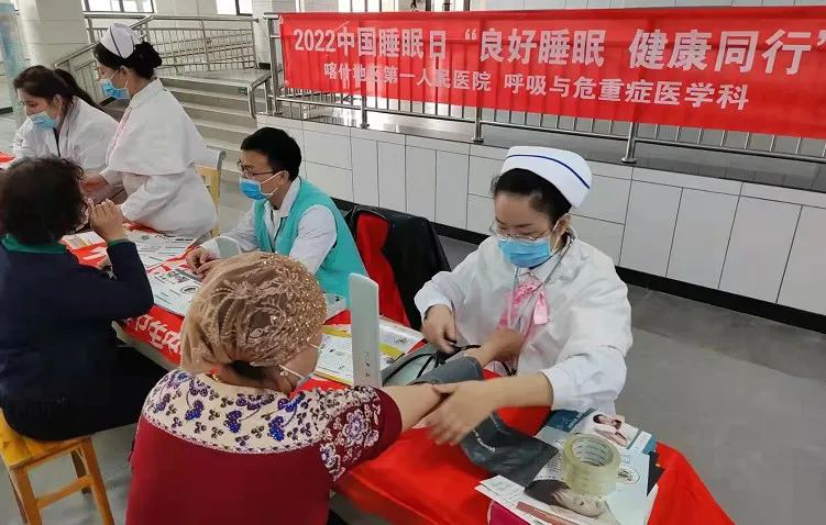 喀什地區科協聯合地區護理學會、喀什地區第一人民醫院呼吸與危重癥醫學科、綜合心理科專家團在喀地一院疏附廣州新城院區以及疏附縣人民醫院,開展第22個“世界睡眠日”主題宣傳義診活動,今年活動的主題是“良好睡眠,健康同行”。