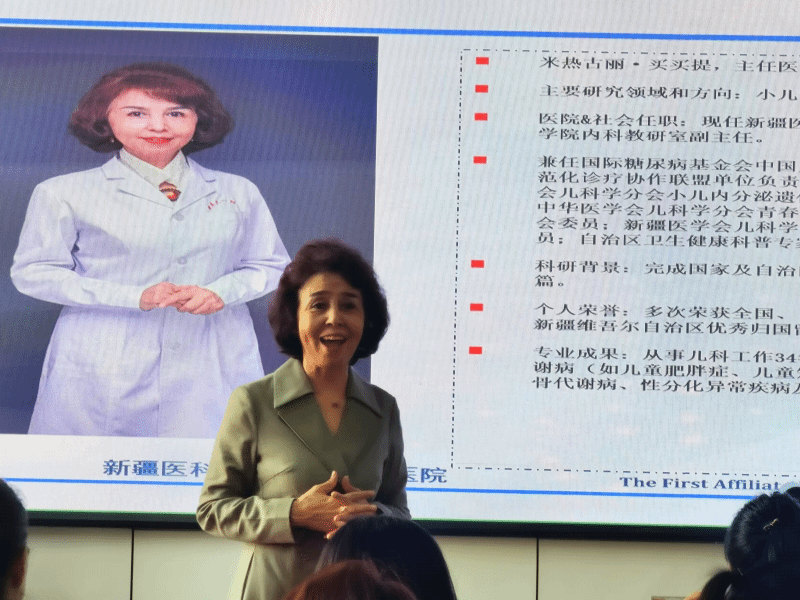 活動(dòng)主會(huì)場設(shè)在和田市衛(wèi)健委,吸引了眾多市人民醫(yī)院的醫(yī)護(hù)工作者參與。同時(shí),通過藍(lán)衛(wèi)通系統(tǒng),各縣市的180余名醫(yī)護(hù)人員也在線接受了培訓(xùn)。新疆醫(yī)科大學(xué)第一附屬醫(yī)院兒科中心小兒內(nèi)四科主任米熱古麗·買買提以“兒童T1DM診療難點(diǎn)與思考”為題,深入淺出地進(jìn)行講解,現(xiàn)場互動(dòng)熱烈。